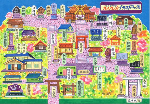 神域の九十九山は屯田兵百戸が移住、うち一戸が入居直後火災で剣渕の空兵屋に転出、九十九戸で士別の開拓が開始されたことに因んで名づけられ、道北一の桜の名勝として有名です。エゾヤマザクラのほかエゾカスミザクラも有り、明治以来郷土と桜を愛した先人市民が年毎に植樹を重ねたものです。毎年5月開花前後、観光協会は桜まつりを開催賑わいます。