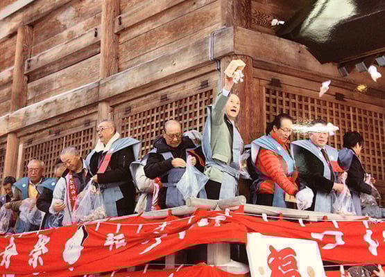 2月3日㈰午後4時から節分祭に引き続き、カミシモ着用、年男、年女により賑やかに福まき、景品入りの福豆、福餅、副飴など沢山まきます。